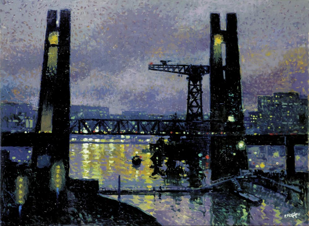 Pierre Péron (1905-1988) Le grand pont, la nuit. gouache sur papier noir. 97x130cm Collection particulière.